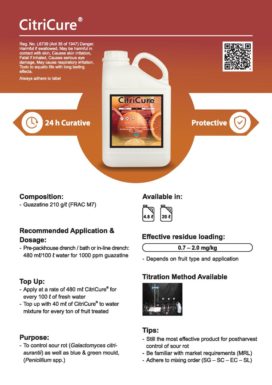 A post-harvest fungicide for citrus containing Guazatine for control of post-harvest decay.